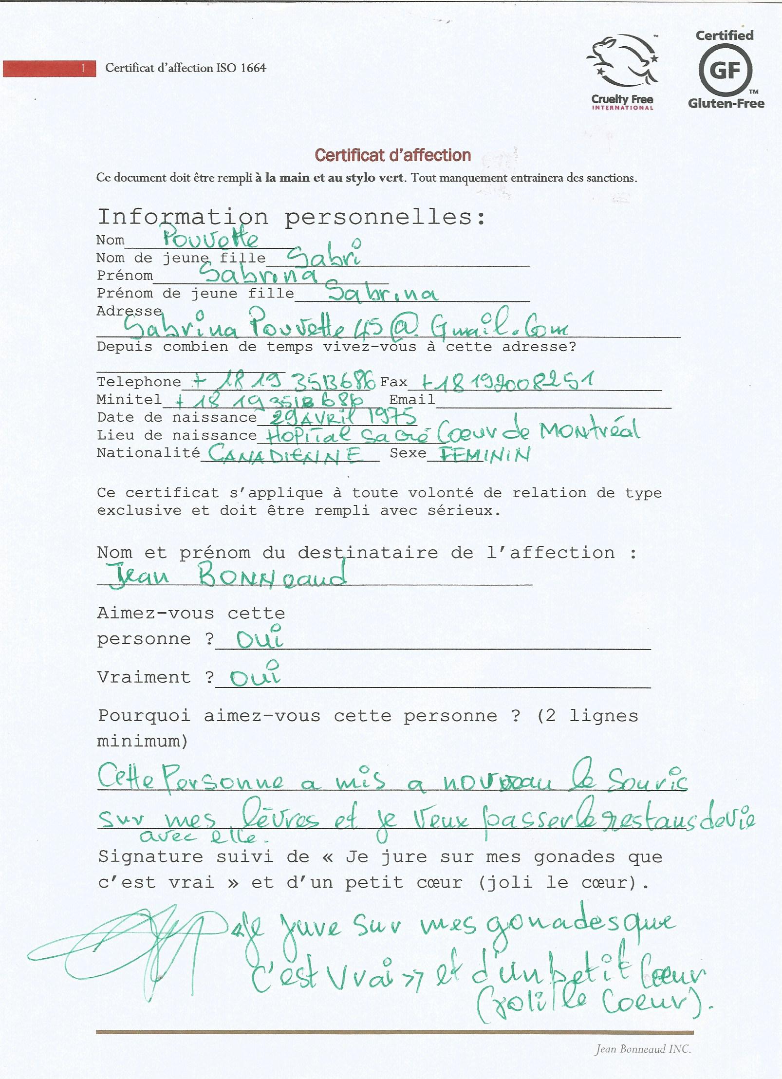 Pour pouvoir aimer Jeannot, il faut le déclarer officiellement.
